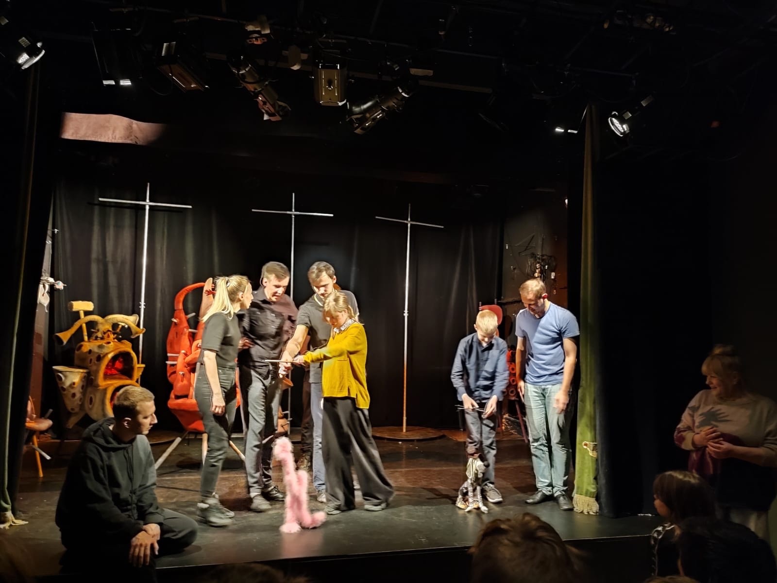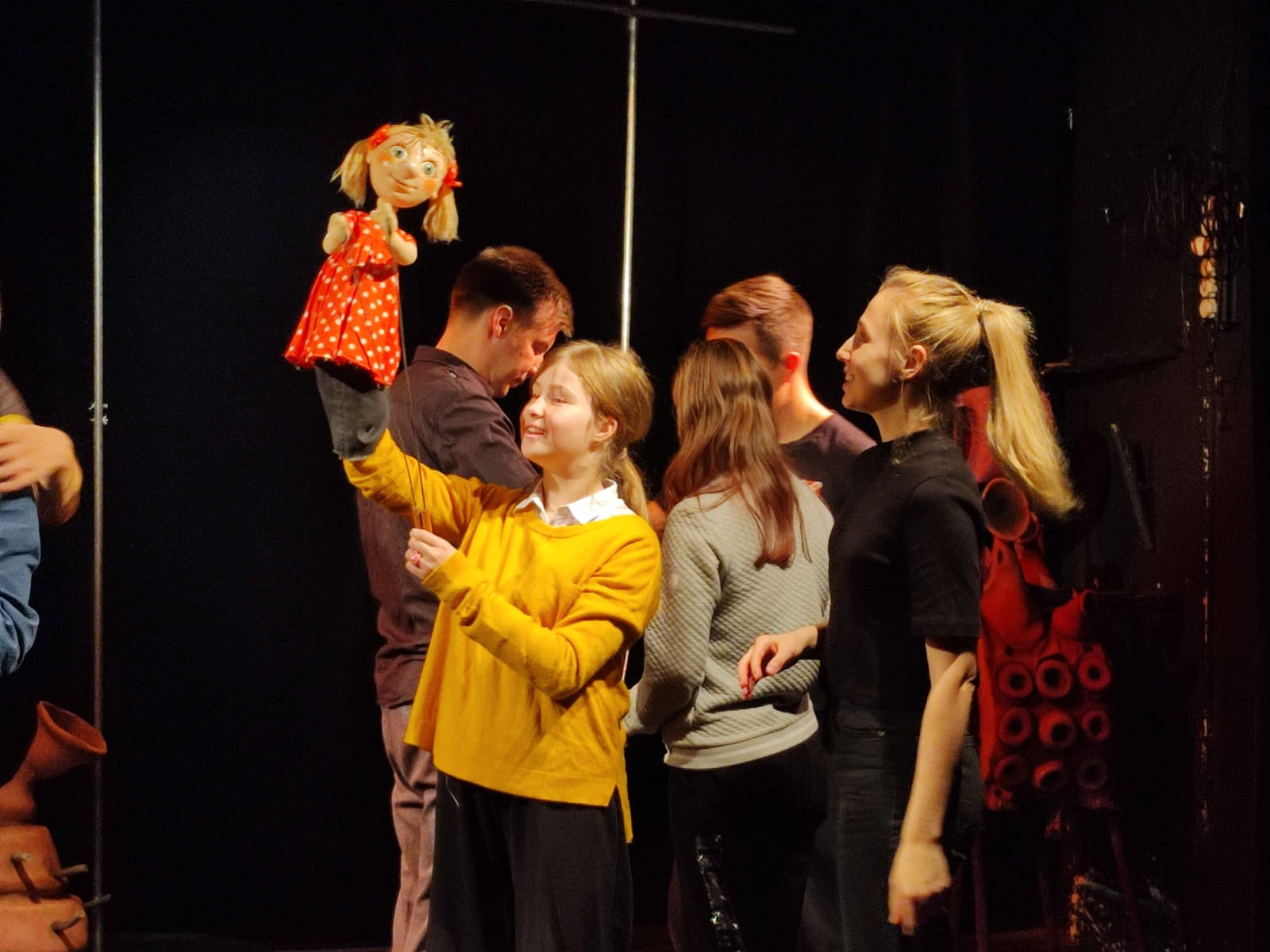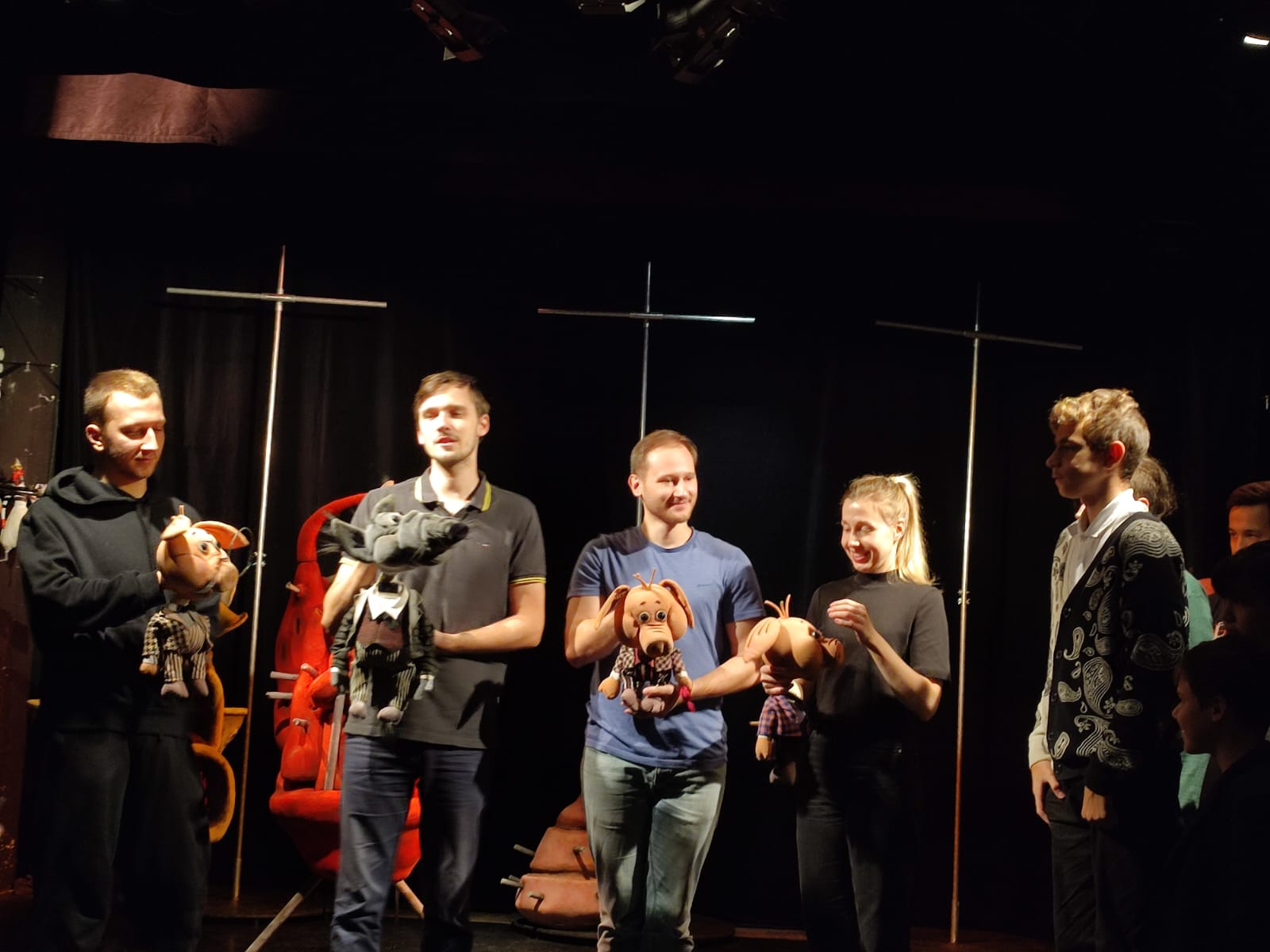 12 октября 2023 года ребята 6-ых классов побывали на интересной экскурсии в театре кукол «Бродячая собачка». Затаив дыхание, они посмотрели репетицию спектакля «Синяя собака» по новелле Т. Гуэрры. Его задача – пробудить в зрителях стремление к добру и чуткости, напомнить, что человек не может жить только сиюминутными материальными потребностями. Бескорыстная верность, любовь, самоотдача и преданность могут изменить к лучшему душу человека и его мир. Затем нашим школьникам художественный руководитель рассказал, как создается спектакль, какие театральные профессии существуют. Самым ярким моментом встречи стал мастер-класс «Хочу стать кукловодом: профориентация». Ребятам показали планшетных и верховых кукол, перчаточных и тростевых, управляемых снизу. Не меньший восторг вызвали у детей и низовые куклы -марионетки, управляемые сверху с помощью ниток, прутов или проволоками. Всем желающими была предоставлена возможность потрогать и поиграть со сказочными героями. Молодые актеры, влюбленные в свою профессию, помогали голосом оживить кукол, чем вызвали бурю самых положительных эмоций у всех присутствующих. Думаем, что премьера спектакля, которая состоится в январе 2024 года, станет ярким событием в жизни Санкт-Петербурга, а наша встреча с детским театром останется в памяти шестиклассников и поможет им стать культурнее и воспитаннее.