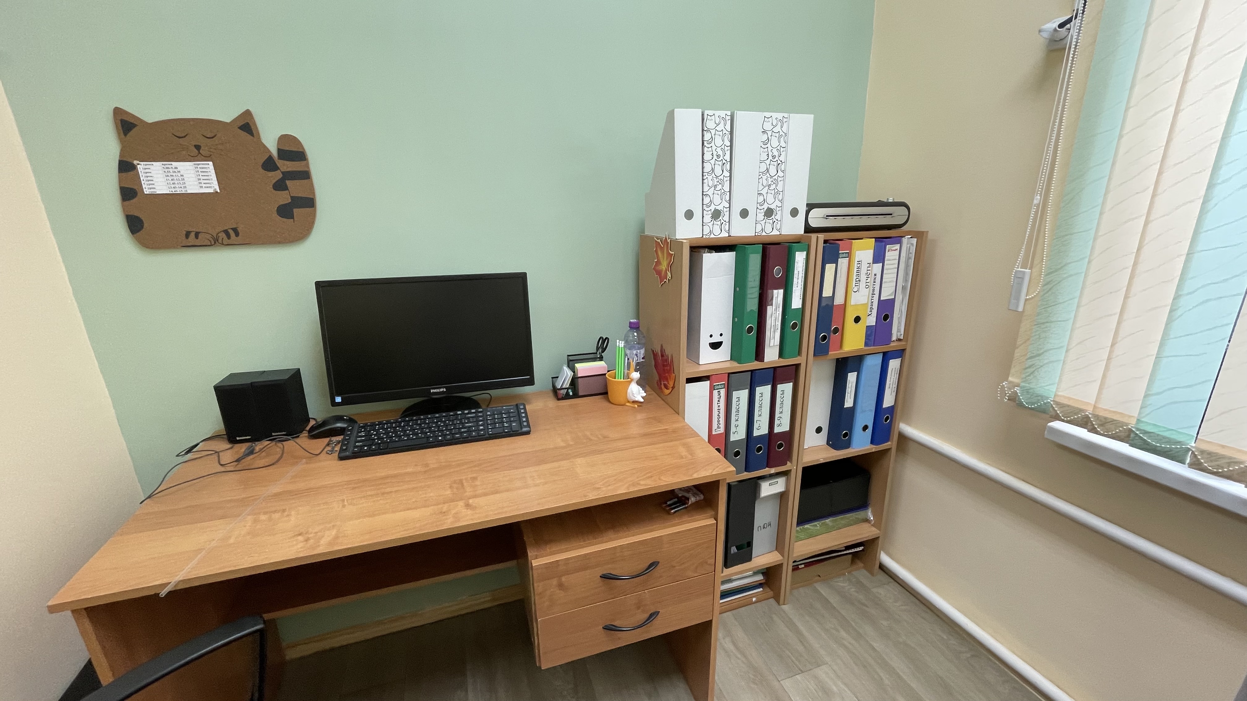 - Рабочая зона: 2 компьютерный стола, стулья, компьютер, множительная техника, шкафы для хранения методических материалов, дидактических игр и игрушек